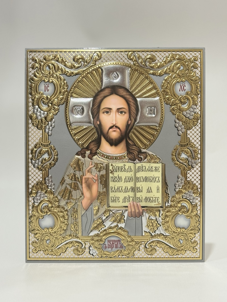 Лик полигр. 15х18, Серебро, Ажур белый, Спаситель - РОСТОВСКИЕ ЛИКИ